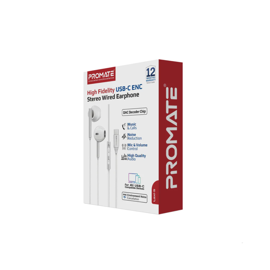 Experience the clarity of premium wired audio with the Laxi-S ENC USB-C Stereo Earphones. Designed for modern USB-C devices, these high-fidelity in-ear headphones deliver crisp mids, powerful bass, and crystal-clear highs through precision-engineered 14mm drivers. Featuring an advanced silicone microphone with Environmental Noise Cancellation, Laxi-S ensures your voice is heard clearly on calls and meetings without background noise interference.