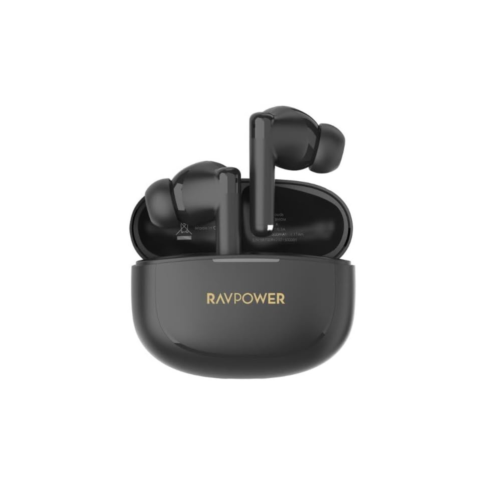 RAVPower True Wireless Earbuds, 24H Playtime, Bluetooth 5.3, ENC Clear Calls, 10mm Dynamic Driver, IPX5 Waterproof, USB-C Quick Charging, 300mAh Charging Case
