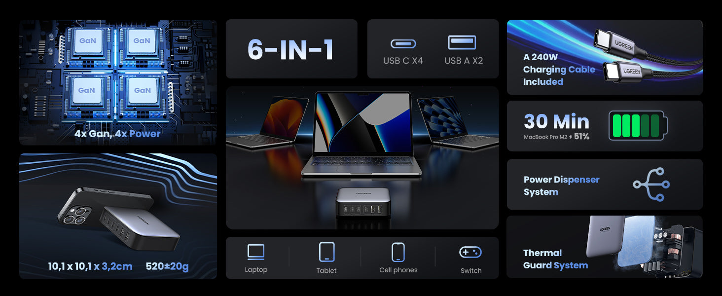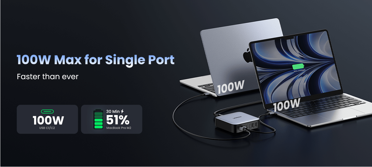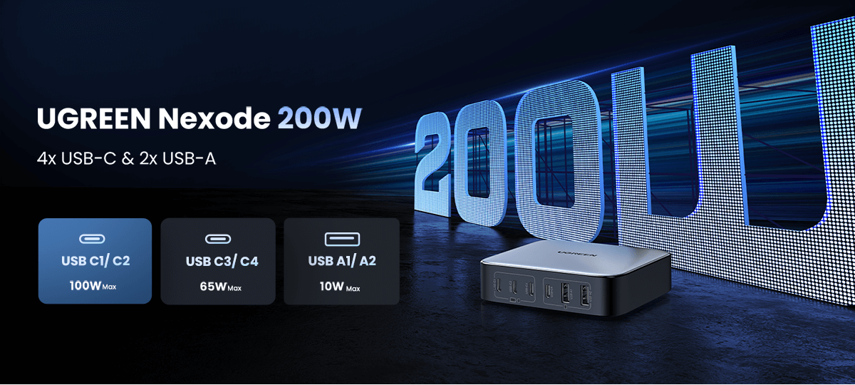 UGREEN Nexode Set 200W Fast USB C Charger 2M UK Plug Cord Station